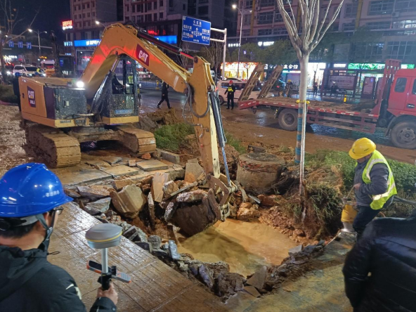 30余名搶修人員克服夜間作業、濕滑泥濘、施工難度大等困難,連續奮戰,井然有序的開展一系列搶修工作。至23時左右,除城區乾坤大道、孝三路沿線區域以外,城區其他地方和云夢區域逐步基本恢復供水。經過15個多小時的搶修作業,25日11時,供水干管已基本修復完畢,城區已恢復供水。