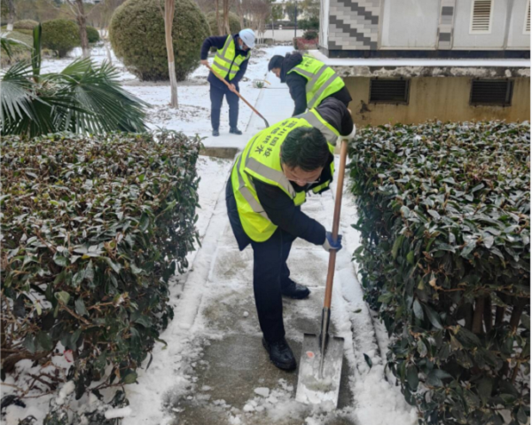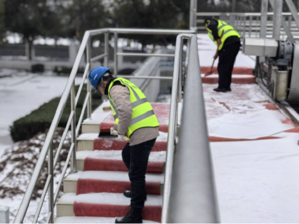以雪為令,雪停路清。22日早上7點(diǎn),公司派出5名志愿服務(wù)隊員參與公交站臺掃雪除冰行動,有力保障群眾公交出行安全。除此之外,為了保證生產(chǎn)廠區(qū)道路暢通,公司采取有力舉措,仙女湖水廠、二水廠、一水廠、龍宮等多個辦公區(qū)域共調(diào)動工作人員100余名和2臺鏟車,采取撒鹽破冰、鏟雪等方式,確保生產(chǎn)及辦公區(qū)域道路暢通。