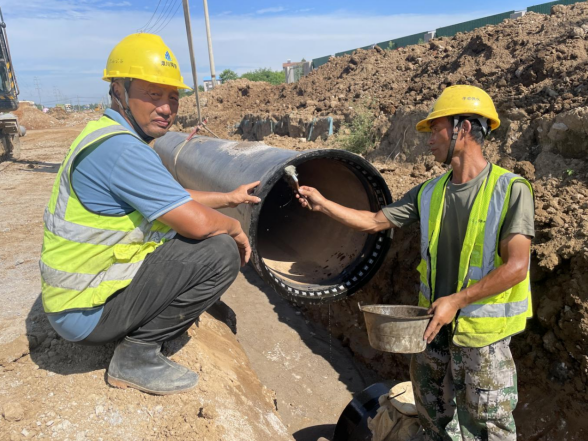近期我市出現持續高溫天氣,為加快推進城市重點供水管網建設,澴川國投暢泉公司的施工人員搶抓晴好天氣,緊鑼密鼓地加緊施工。