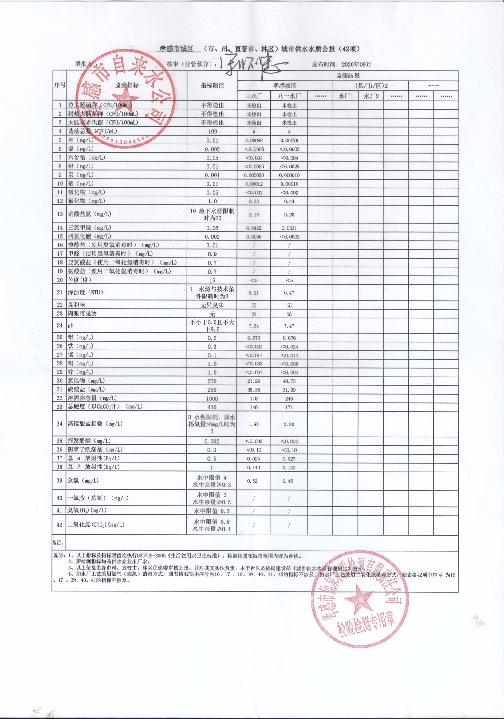 2020年9月水質(zhì)報告